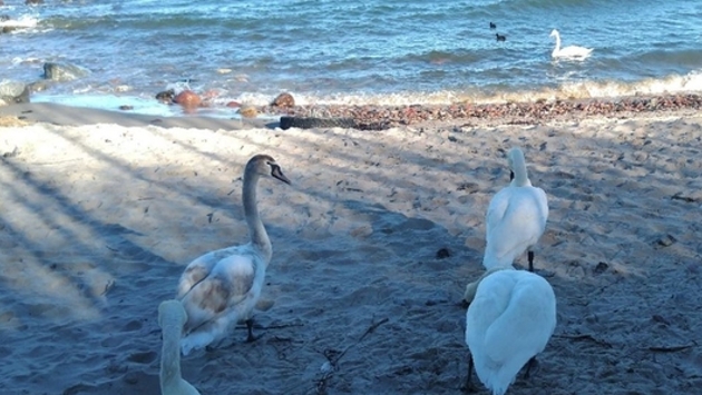 В поселке Заостровье под Пионерским на диком пляже лебеди не дали провести время у моря маме с ребенком. На птиц пожаловалась жительница Калининградской области в паблике «ЯД» в субботу, 27 апреля 2020 года. По словам женщины, в воде и на берегу около сотни птиц. «Мы с сыном кидали камни в воду, лебеди подумали, что это еда, и стали выходить на берег. Было чуть-чуть хлеба с собой, знаю, что им хлеб нельзя, но дали по кусочку. Теперь по пляжу ходят стада лебедей, а мы с сыном пошли подальше, так как страшно: что у них, голодных, в голове – неизвестно», – рассказала калининградка. Кроме этого, по словам женщины, на берег море выбросило много рыбы и птичьих скелетов. Ранее kaskad.tv писал о том, как калининградец запечатлел плач лебедя.