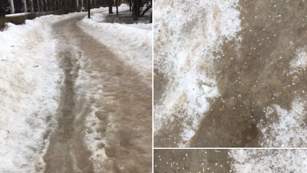 С дорожек в Чапаевском парке реагенты убирают вручную