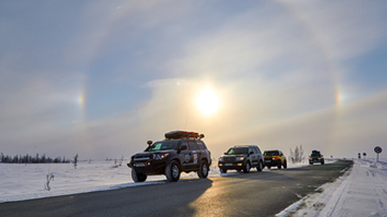 Сильные ветра, температура поднималась до +6 °C, мягкий снег переставал держать машины. Много времени два экипажа потратили на стоянки — пурговали, пережидали непогоду. Первым сложным отрезком стал промежуток между Новым Уренгоем и Дудинкой. Как такового зимника там нет, есть отрезки технологических путей. Где-то приходилось ехать по целине. На этот участок Сергей с командой потратили шесть дней. Обратно его же прошли за сутки. За Дудинкой температура изменилась и упала ниже –35 °C, сильный ветер до 20 м/с продувал моментально. Сергей признается, что до сих пор помнит, насколько было холодно.