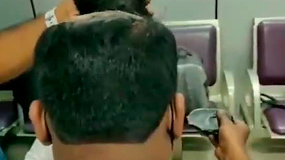 На кадрах, опубликованных в сети, видно, как полицейские отрывают искусственные волосы с голов преступников и находят там несколько черных мешков, а также наличные деньги.