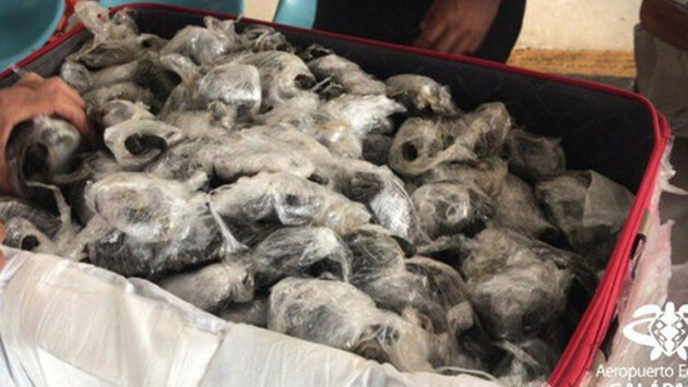 В аэропорту Эквадора в багаже обнаружили 185 черепашек, завернутых в пленку