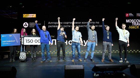 По итогам Moscow Travel Hack каждый из партнеров определил победителя по своей задаче, а из 10 финалистов зрители в зале выбрали обладателя дополнительного приза. Им стала команда Mountain Heads, которая получила сертификат на путешествие от Russpass.