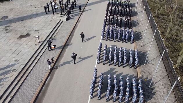 В Калининграде состоялся городской развод патрульных нарядов полиции, Росгвардии и казаков. Торжественное построение провели у мемориала 1200 воинам-гвардейцам.