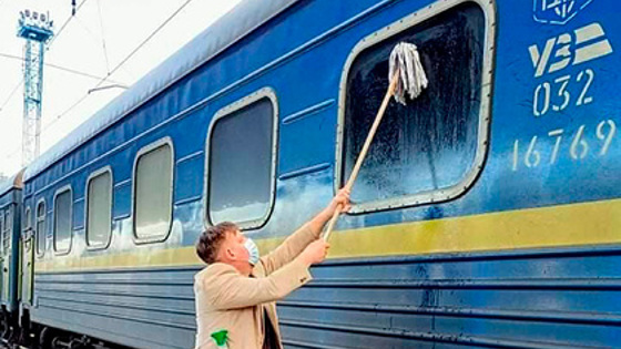 «Мыть УЗ («Укрзализныця» — прим. «Ленты.ру») непросто, но ведь это нужно просто сделать, не так ли?» — так подписал он свою публикацию.