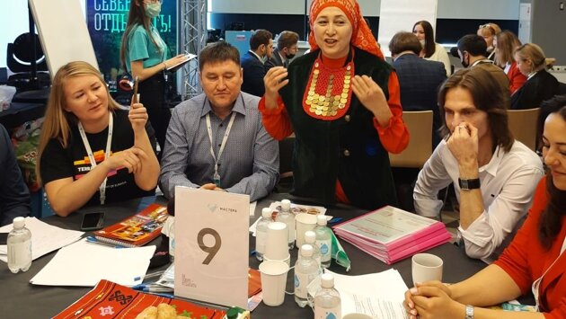 Что может запомнится практически на всю жизнь? Правильно - вкус еды, которая отражает многовековые традиции местного населения. Недаром во всем мире так популярно такое направление, как эногастрономический (не этно-) туризм. Его называют новой философией путешествий с целью поиска неизведанных вкусов и аутентичных кулинарных традиций. И если для жителей Башкирии бишбармак или казы - практически повседневная пища, то для гостей - экзотика. И подавать ее надо, конечно же, в соответствующем антураже, ведь зрительные впечатления врезаются в память не хуже вкусовых. Поэтому и о своем проекте "Мастерская национальной кухни "Бишбармак" Венера Биккузина рассказала, переодевшись в национальный костюм и предложив экспертам и коллегам чай с башкирским медом, баурсаком и чак-чаком.