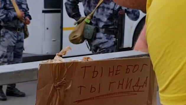 «Ты не бог, ты — гнида», - гласит надпись.