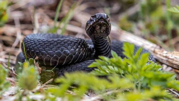 В средней полосе России распространена только одна ядовитая змея: гадюка. Она может иметь различный окрас — от коричневого с зигзагами до полностью черного.