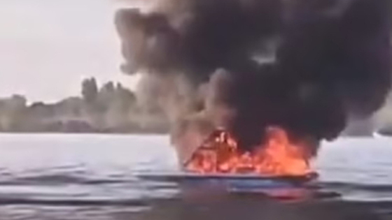 После появились спасатели, которые попытались потушить лодку. В конце ролика видно, что она полностью сгорела.