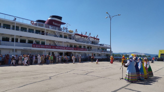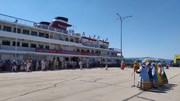 20 июня в речном порту Тольятти теплоход с туристами встретил музыкальный ансамбль