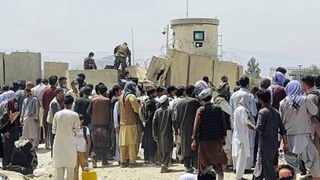 В настоящее время в аэропорту находятся тысячи афганцев, ожидающих эвакуации.