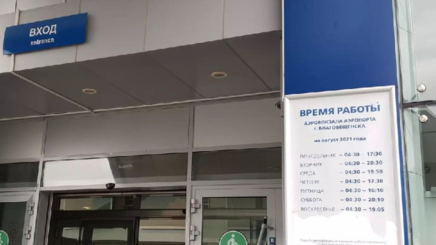 График работы аэропорта города Благовещенска в августе 2021 года: