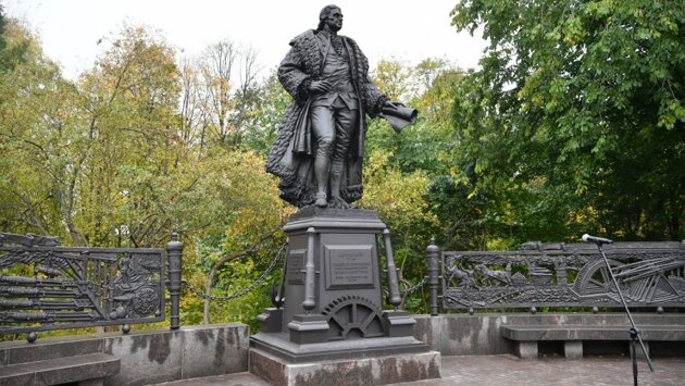 Открытие памятника выдающемуся шотландскому и российскому оружейнику, изобретателю, металлургу, инженеру Чарльзу Гаскойну состоялось накануне. Автором композиции стал московский скульптор Виталий Шанов, а в реализации проекта участвовали Литейный завод «Петрозаводскмаш» и Национальный музей Карелии. Композиция включает фигуру самого Гаскойна высотой более 3 метров, окруженную барельефами, изображающими работу в заводских цехах, и фигурными решётками. Памятник сделан из бронзы, а постамент и решетки с рельефами, изготовленные на литейном заводе в Петрозаводске – из чугуна. Чарльз Гаскойн родился в Шотландии в 1739 году. В Россию приехал по приглашению Екатерины II. Он 20 лет руководил Александровским пушечным и чугунолитейным заводом. За это время предприятие стало одним из передовых для своего времени и производило до середины XIX века практически все пушки для российской армии и флота. Улица, на которой жил горный начальник Гаскойн, называется Заводской линией. Есть в Петрозаводске и улица Чарльза Гаскойна, она проходит вдоль последних исторических заводских корпусов, построенных на рубеже 19-20 веков. Фото: пресс-служба Правительства РК
