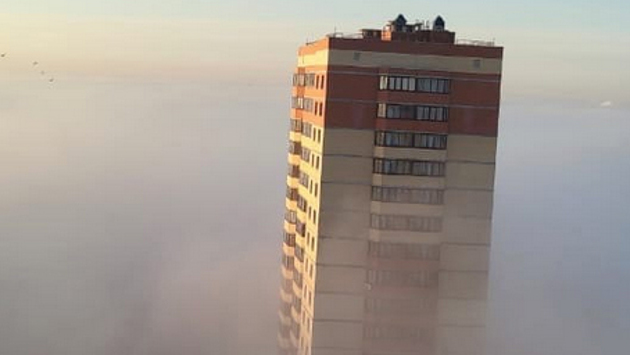 Жители Новосибирска делятся в социальных сетях фотографиями тумана, накрывшего город.