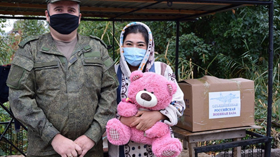 Российские военнослужащие организовали сбор теплых вещей и продуктов питания, а затем передали нуждающейся семье.