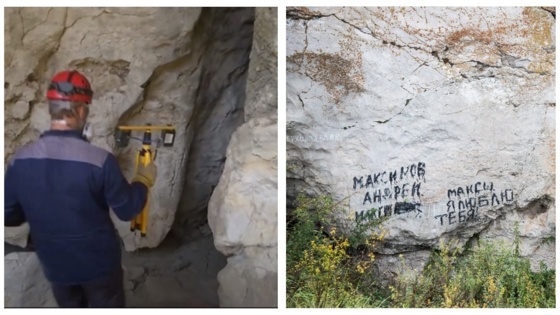Неделю в Авдотьинской пещере молодые металлурги с помощью абразивов счищали написанное пером, маркером или краской.