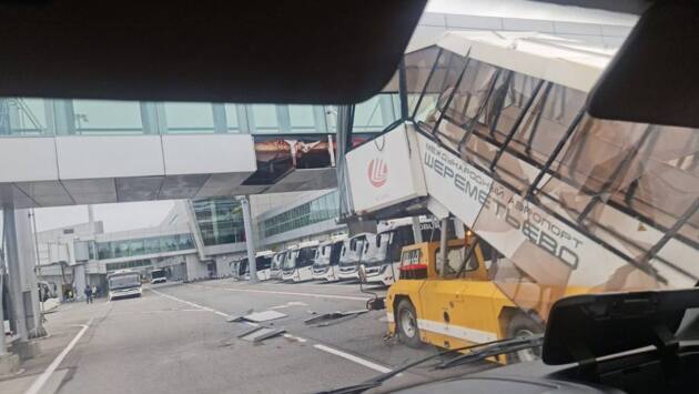 Самоходный трап въехал в переход терминала D в Шереметьево