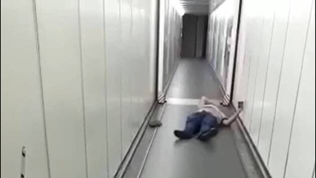 Инцидент попал на видео. На кадрах видно, как мужчина пытается разорвать резиновые складки трапа. В какой-то момент, обессилев, он лежит на полу. Позже мужчину передали медикам.