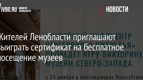 Жителей Ленобласти приглашают выиграть сертификат на бесплатное посещение музеев