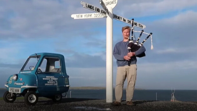 Мужчина проехал всю Англию на самой маленькой машине в мире