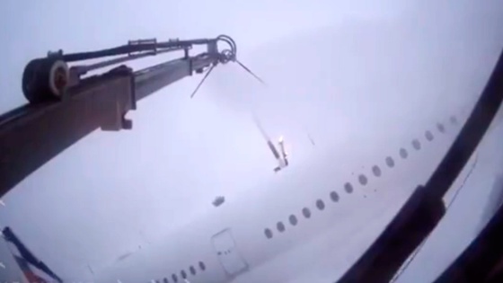 Столкновение самолета с машиной для противообледенительной обработки в Шереметьево попало на видео