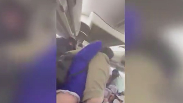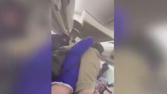 На кадрах видно, как двое мужчин, вцепившись друг в друга, дерутся в проходе самолета, не обращая внимания на крики прекратить дебош. Вскоре их разнимают другие пассажиры — так, один из попутчиков встает между двумя американцами, чтобы остановить бой.