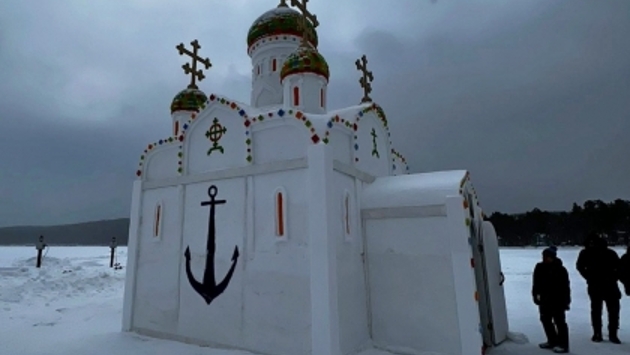 В Челябинской области построили снежную часовню на льду озера Тургояк