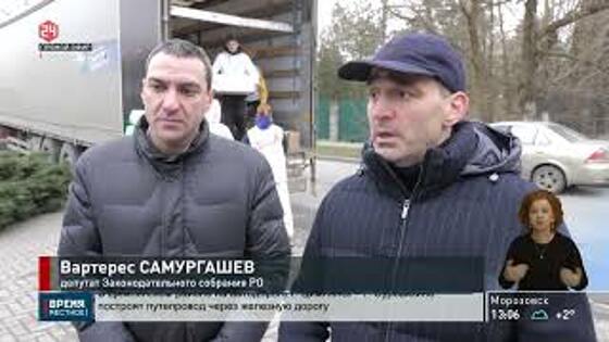 Ростовская область, 1 марта 2022. Телеканал «ДОН 24». Порядка 18 т гуманитарной помощи доставили в пункты временного размещения в Ростове-на-Дону. Грузовая фура с продуктами приехала в южную столицу из Ханты-Мансийского автономного округа, а продукты и товары первой необходимости были собраны региональным отделением партии «Единая Россия» в ХМАО. Список необходимой помощи формировали непосредственно временные переселенцы. Наталья Говорова, начальник ПВР: «У нас больше 150 человек проживает. И основное для нас – это продукты, ценное. Людей нужно кормить каждый день, 3 раза в день мы их кормим. И очень не хватает продуктов питания. Сейчас заявлено было по списку, я думаю, что пришли все продукты, необходимые для того, чтобы кормить людей». Для беженцев были доставлены консервы, чай, кофе, крупы, питьевая вода, средства личной гигиены, постельное белье и многое другое. В разгрузке помогали активисты Ростовского регионального отделения «Молодой гвардии». Артем Седов, руководитель Первомайского местного отделения «Молодой гвардии Единой России»: «Вообще «Молодая гвардия» там, где нужна помощь. В первую очередь сейчас нужна помощь в пунктах временного размещения. За «Молодой гвардией» Ростовского регионального отделения закреплено 6 ПВРов в Неклиновском районе». Помогают на пунктах временного размещения и депутаты донского парламента. По словам члена фракции «Единая Россия» Вартереса Самургашева, за каждым ПВР закреплен депутат. Вартерес Самургашев, депутат Законодательного собрания Ростовской области: «Приехал посмотреть, в каких условиях наши жители здесь проживают. Есть ли какие-то проблемы. Водички привез. И так совпало, что вот и продукты питания привезли. Пообщался с жителями этого пункта, услышал, насколько качественное питание, хватает ли, какие есть проблемы. Чтобы решать незамедлительно это моменты. Каждый депутат прикреплен к пункту временного размещения, выезжаем, общаемся».