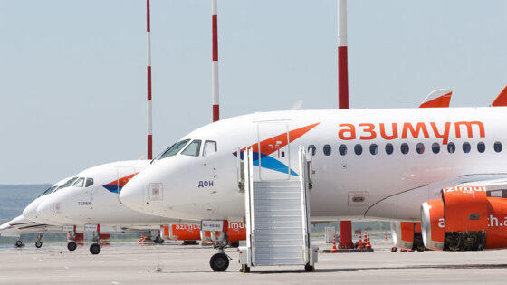 "Азимут" - авиаперевозчик, базирующийся в аэропортах Платов (Ростов-на-Дону) и Пашковский (Краснодар). Флот состоит из самолетов SSJ-100-95LR с увеличенной дальностью полета. В расписании - рейсы более ста направлений по РФ и за рубеж.