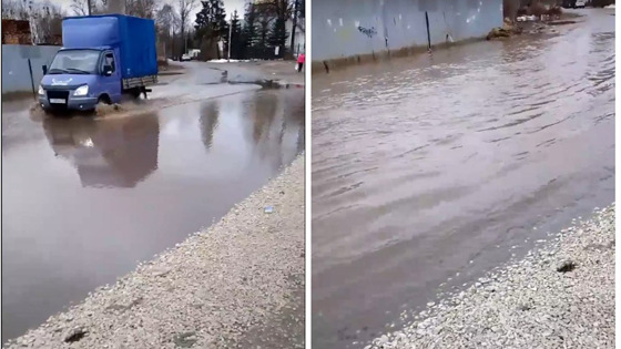 И только люди вздохнули с облегчением, как на следующий же день «озера» снова возникли. А дело в том, что власти устранили проблему, а не причину – отсутствие водостоков. Местные отмечают, что лужи начали возникать после строительства по соседству ангара, который, судя по всему, своим забором перекрыл место для отвода воды.