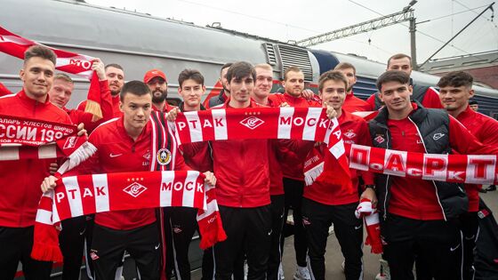 Перед тем как зайти в вагон, команда сделала памятное фото с шарфами, которое клуб посвятил болельщикам: «Вы годами гоняете за нас по городам страны, а сегодня на поезде едем мы».
