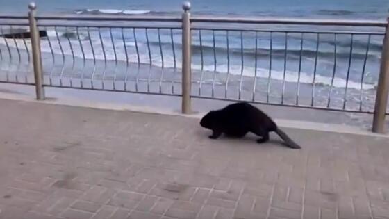 Бобёр забрался на прибрежный променад в Калининграде