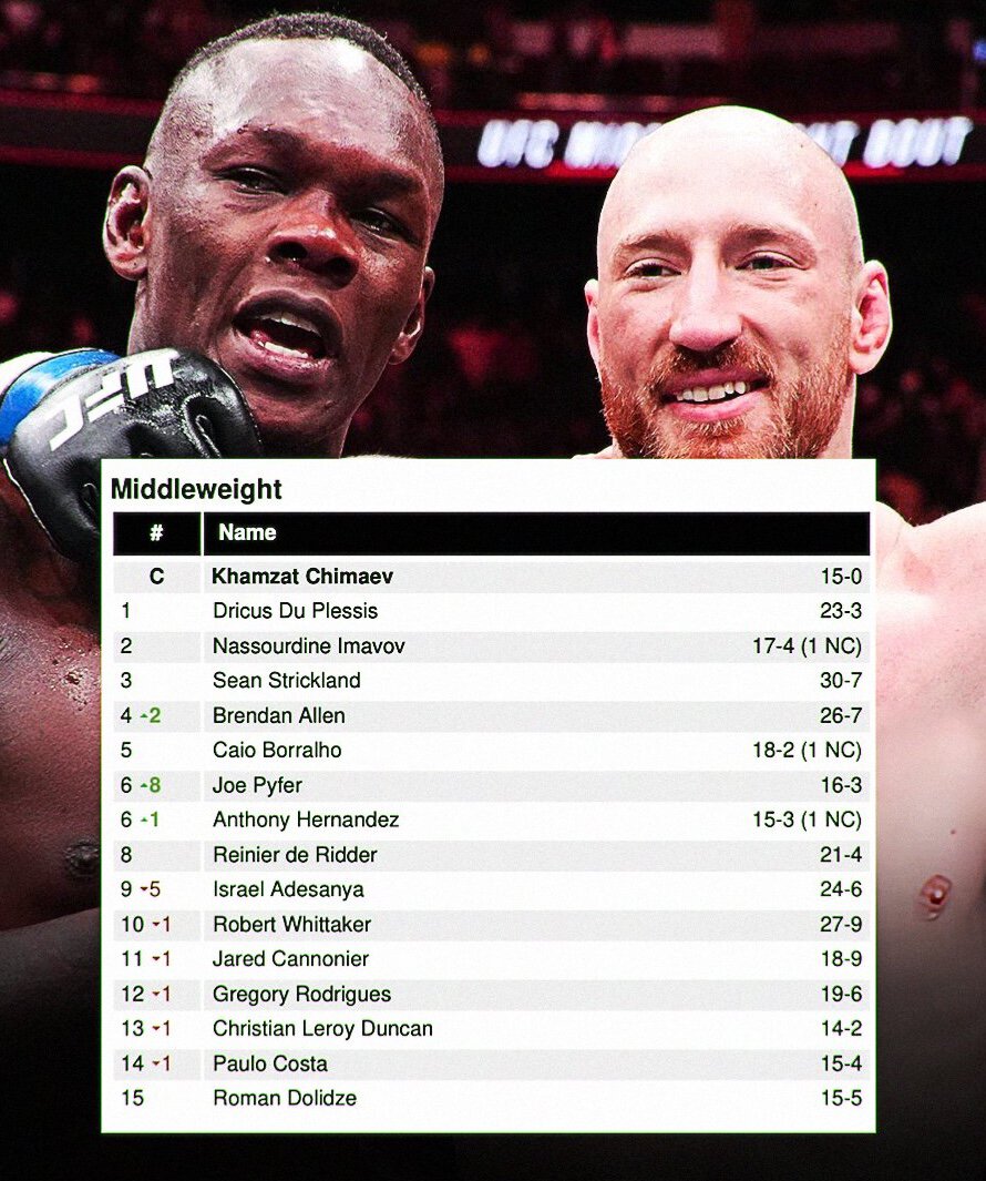 Пайфер – шестой в обновленном рейтинге среднего дивизиона UFC. Адесанья – девятый
