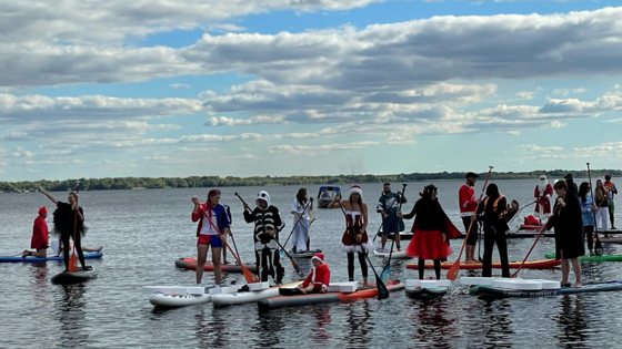 Санта Клаус и черный лебедь. В День города на саратовском пляже прошёл сап-карнавал