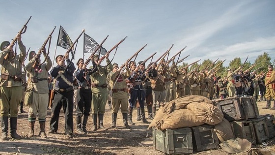 Бойцы Красной армии вместе с повстанцами атаковали укрепления Белой армии. Бой сопровождался пиротехникой, что позволил создать атмосферу настоящего сражения.