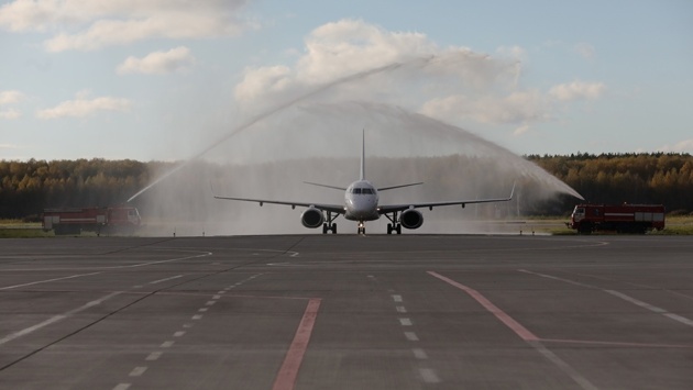 Водной аркой встретили в аэропорту Нижнего Новгорода первый самолет из Оренбурга