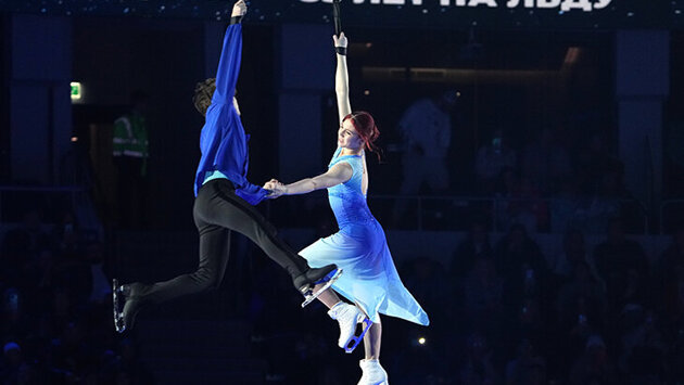 Влюбленные Трусова и Кондратюк с номером-аттракционом: кружились на тросах без страховки – под Киркорова