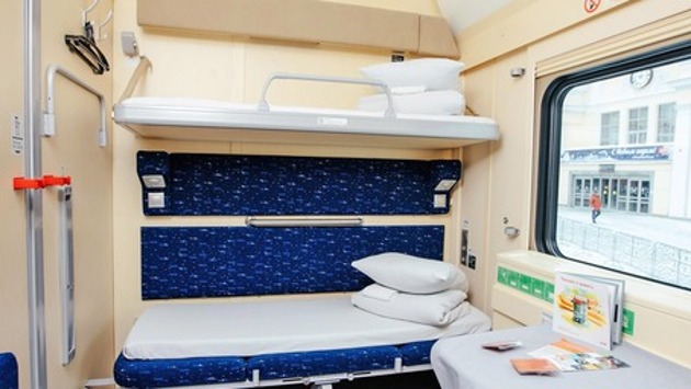 В поезде подключено управляемое освещение, на окнах висят специальные шторы, работает система кондиционирования, и даже есть душ.