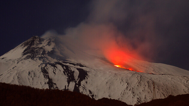 Потоки лавы от вулкана Этна столкнулись со снегом