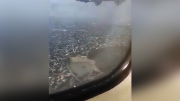 Видео начинается с вида на крыло. На фоне звучит речь пассажиров, внизу видны постройки, самолет заходит на посадку. В следующие секунды раздаются крики, трансляция продолжается, но в кадре уже видны языки пламени.