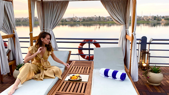 На каждом из трех теплоходов есть люксы и каюты с французскими окнами, Wi-Fi, лаунж-бар и бассейн. Mayfair Cruises гарантирует безупречную чистоту на протяжении всего круиза – это визитная карточка компании. А блюда египетской кухни, поданные на борту, вас приятно удивят и добавят аутентичности в путешествие по темным водам Нила.