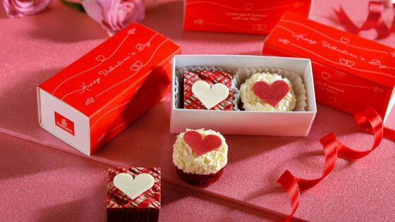 В День святого Валентина пассажирам всех классов обслуживания предложат сочные брауни или капкейки «Красный бархат», украшенные красными и розовыми сердечками, в подарочной мини-коробке Эмирейтс, а красная подсветка будет освещать салон самолетов. С 13 по 15 февраля залы ожидания Эмирейтс по всему миру будут создавать романтическое настроение, здесь пассажиров будут угощать множеством прекрасных праздничных сладостей – от шоколадных сердечек до шоколадного пирога ко Дню святого Валентина и клубники в шоколаде.