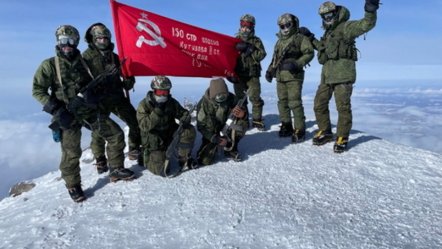 Военнослужащие Центра горной подготовки и выживания «Терскол» водрузили Знамя Победы на высшую точку России и Европы