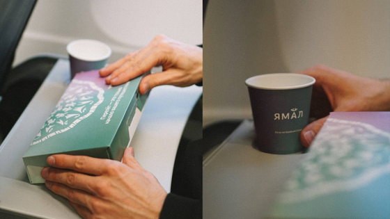 Фирменный стиль туристического бренда ЯНАО применяет авиакомпания «Ямал». Национальная символика появилась на стаканчиках и ланч-боксах перевозчика. – Дизайн разрабатывала наша команда «Туризм на Ямале», акцент сделан на северном сиянии, сезон которого у нас длится долго – с середины августа до середины апреля, – рассказал директор департамента молодежной политики и туризма ЯНАО Наиль Хайруллин. Внутри бокса с обедом есть буклет, который рассказывает, почему стоит посетить Ямал. Наиль Хайруллин также отметил, что ко Дню оленевода запланирована специальная ограниченная серия ланч-боксов..