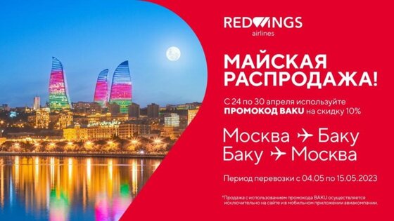 До 30 апреля билеты на эти рейсы продаются со скидкой в 10 процентов: чтобы воспользоваться акцией, при оплате на сайте нужно ввести промокод BAKU.