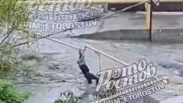 Повис на газовой трубе: в Ростове мужчину чуть не унесло потоком дождевой воды