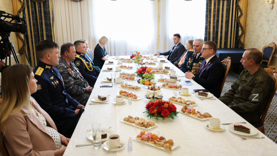 В Челябинской области в День Победы и накануне праздника проходят встречи с ветеранами Великой Отечественной войны. Участники вспоминают подвиги воинов на полях сражений и обсуждают насущные проблемы. «В День Победы мы чествуем наших ветеранов, вспоминаем тех, кто отдал за Родину свои жизни. Связь поколений не прерывается. Так было и так будет в России всегда», - подчеркнул губернатор Алексей Текслер. В День Победы в резиденции губернатора состоялась встреча главы региона с представителями нескольких поколений защитников Отечества. Среди них ветеран Великой Отечественной войны Степан Федорович Колесниченко, участники боевых действий в Афганистане, Чечне и Сирии, отличившиеся участники специальной военной операции, мобилизованные. Многие пришли на встречу с губернатором вместе со своими родными. В неформальной обстановке за чашкой чая участники встречи поделились с губернатором своими историями военной службы. Ветеран Великой Отечественной войны Степан Колесниченко рассказал о своем пути в годы Великой Отечественной войны. Его отца и брата на войну забрали в 1942-м, а в 1944-м Степан Федорович сам заступил на защиту Родины на второй Прибалтийский фронт, получил ранение, но после лечения снова вернулся в строй. Победу встретил в Румынии. Степан Федорович 35 лет после войны прослужил в армии, в школе занимался военно-патриотическим воспитанием. «Нас никто не ставил на колени и не поставит, никто и никогда. С Россией воевать нельзя, - уверен ветеран. - Желаю, чтобы ни одна пуля, ни один снаряд не коснулся наших воинов». Ветеран поблагодарил региональное правительство за поддержку и пожелал нынешним воинам победы: «Спасибо большое вам, Алексей Леонидович, за такое внимание ко всем фронтовикам, ветеранам тыла, афганцам, к участникам спецоперации, их семьям». Губернатор отметил, что на сегодня самое главное - сохранять память о Великой Отечественной войне. Это дает нам возможность гордиться нашей Родиной, помнить ее историю. «Ребята, которые выполняли свой интернациональный долг в Афганистане, в других горячих точках, и ребята, которые сейчас воюют в зоне СВО, продолжают дело наших ветеранов, защитников Отечества», - подчеркнул Алексей Текслер и поблагодарил ветеранов и военнослужащих, их семьи и их родителей, которые воспитали героев. Он заверил, что южноуральцы всегда будут помнить подвиг героев и их имена. Отдельно глава региона подчеркнул, что важно сейчас воспитать молодое поколение в духе патриотизма через живую связь поколений, через сплочение. Ветеран боевых действий, участник афганской войны, руководитель регионального отделения Всероссийской общественной организации ветеранов «Боевое братство» Сергей Углев в целях сохранения памяти о ратных подвигах воинов предложил главе региона создать мемориальные захоронения воинов в области. Это предложение губернатор одобрил и сообщил, что работа в этом направлении уже ведется с администрацией Челябинска, определено место мемориала. Участники встречи обсудили вопросы медицинского сопровождения раненых, меры поддержки ветеранов боевых действий, сопровождению семей военнослужащих. «Многое делаем, но обратная связь от наших защитников всегда важна», - считает Алексей Текслер. Участники СВО попросили губернатора рассмотреть параллельную маршрутизацию на лечение в мед
