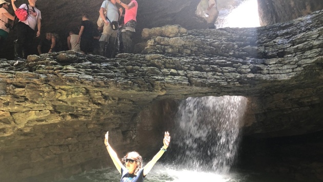 Место действительно уникальное. Небольшая речка течет по теснине и внезапно уходит вниз через отверстие в скале. Пробравшись сквозь него, попадаешь в большую пещеру. И тут можно бесконечно любоваться потоком воды, падающим с высоты 20 метров.