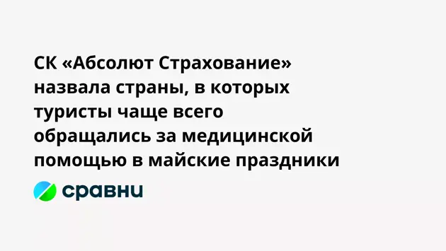 СК «Абсолют Страхование» назвала страны, в которых туристы чаще всего обращались за медицинской помощью в майские праздники