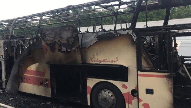 Автобус полностью уничтожен огнем. Районные власти разместили туристов в придорожной гостинице.