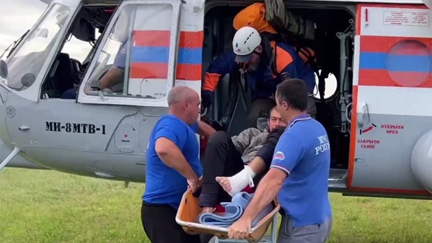 "Обнаружив пострадавшего, вертолет завис над местом его нахождения, спасатели при помощи лебедки спустились вниз и подняли пострадавшего на борт", - отметили в пресс-службе ведомства.